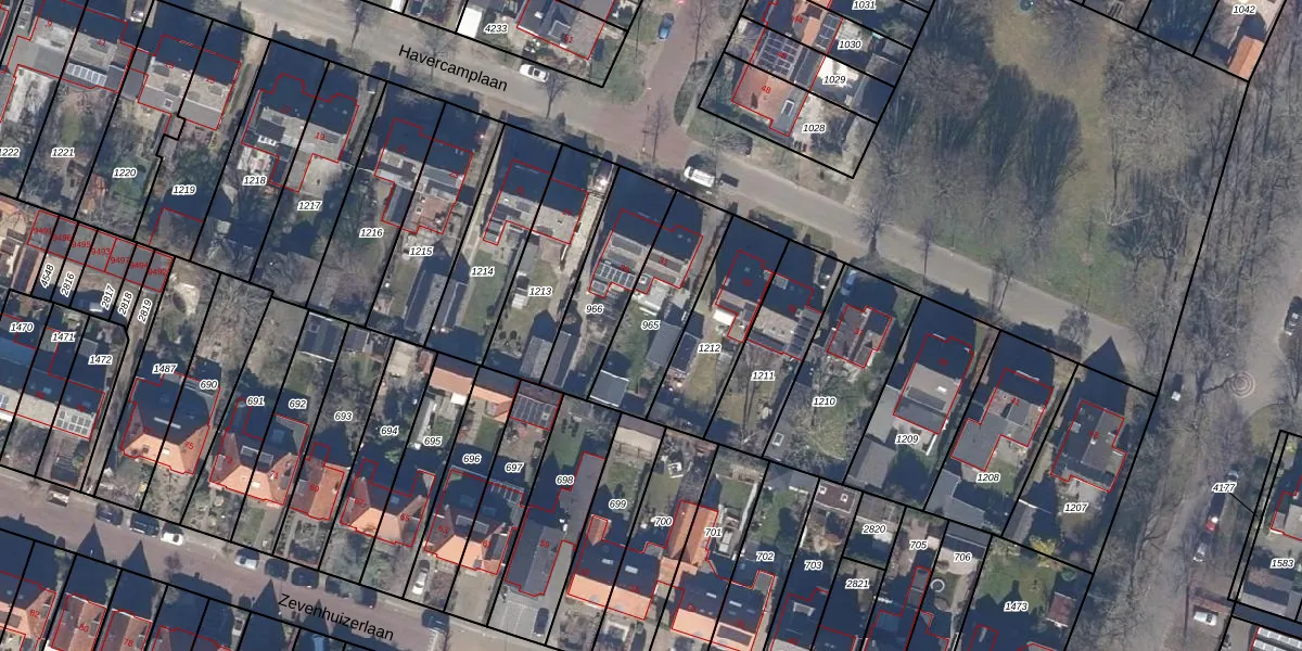 Gebruik de zoekbalk of klik op een perceel om informatie over het perceel te bekijken.