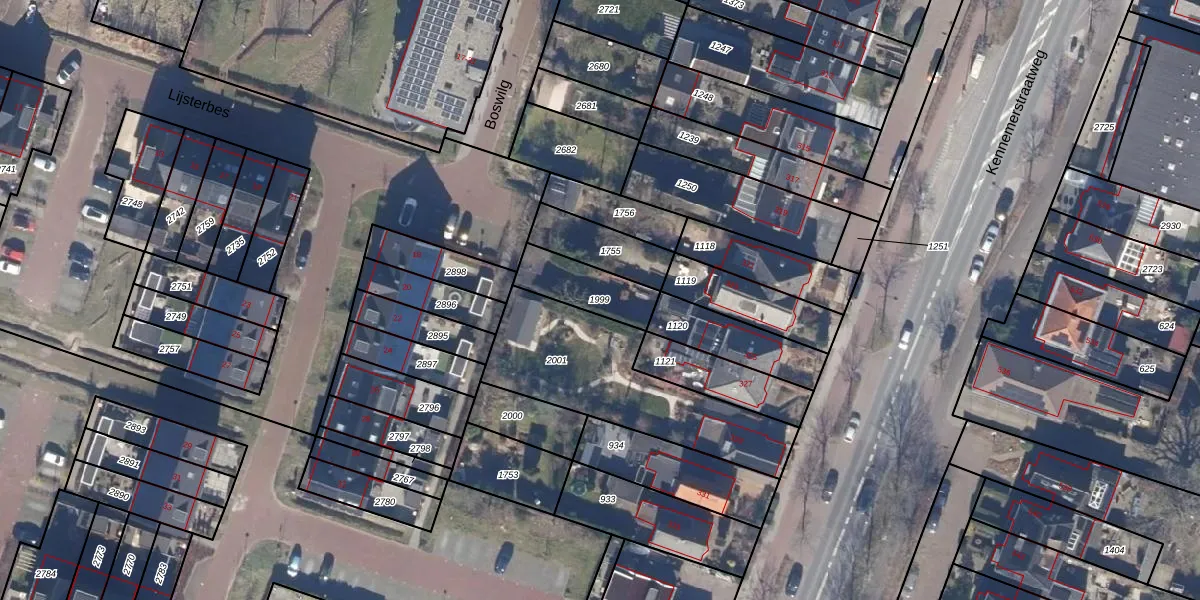 Gebruik de zoekbalk of klik op een perceel om informatie over het perceel te bekijken.