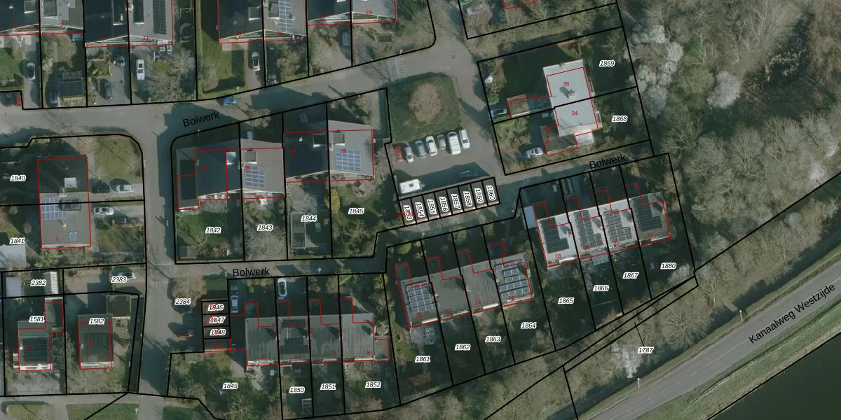 Gebruik de zoekbalk of klik op een perceel om informatie over het perceel te bekijken.