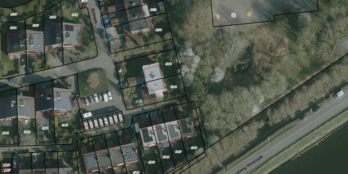 Gebruik de zoekbalk of klik op een perceel om informatie over het perceel te bekijken.