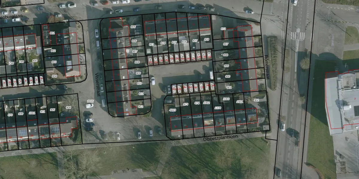 Gebruik de zoekbalk of klik op een perceel om informatie over het perceel te bekijken.
