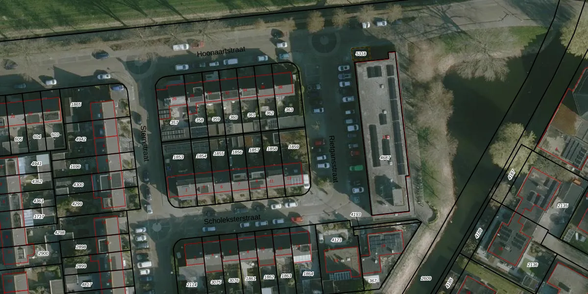 Gebruik de zoekbalk of klik op een perceel om informatie over het perceel te bekijken.