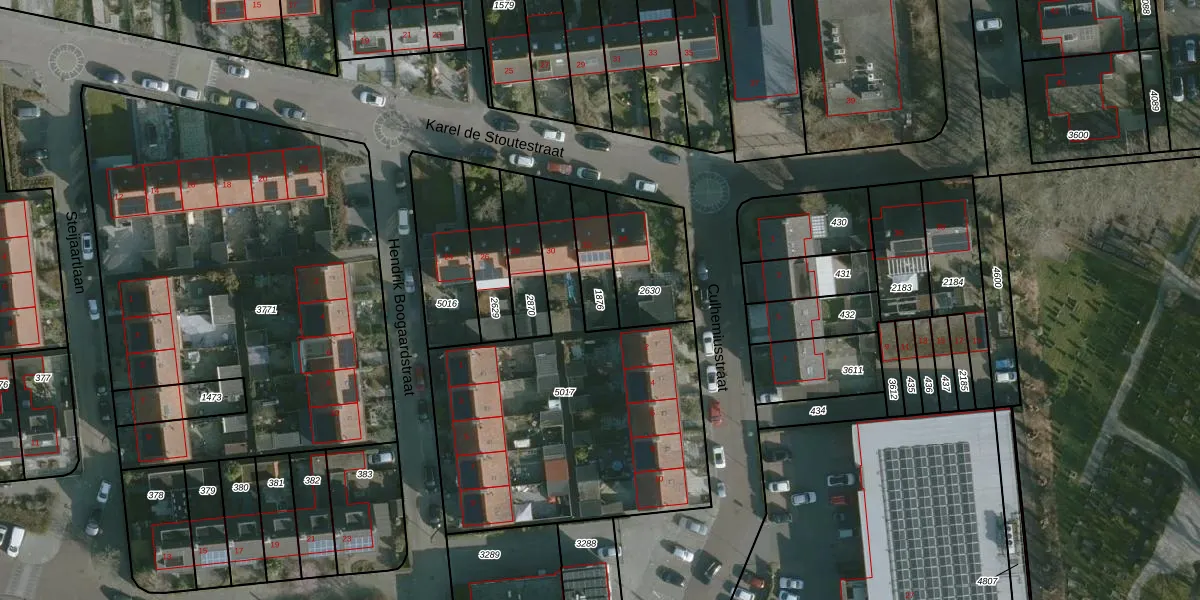 Gebruik de zoekbalk of klik op een perceel om informatie over het perceel te bekijken.