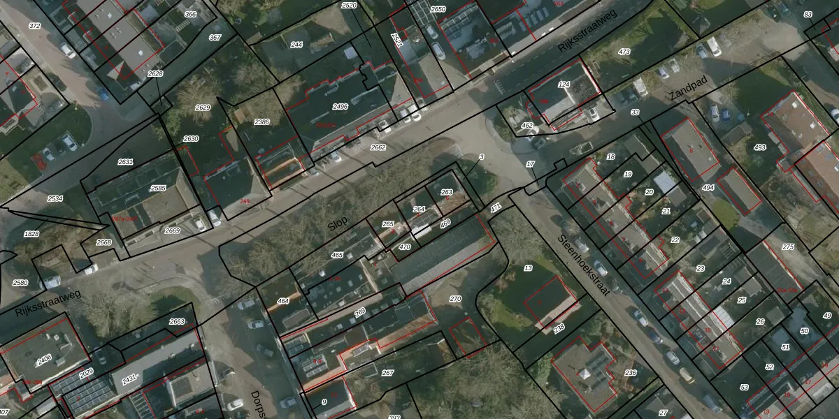 Gebruik de zoekbalk of klik op een perceel om informatie over het perceel te bekijken.