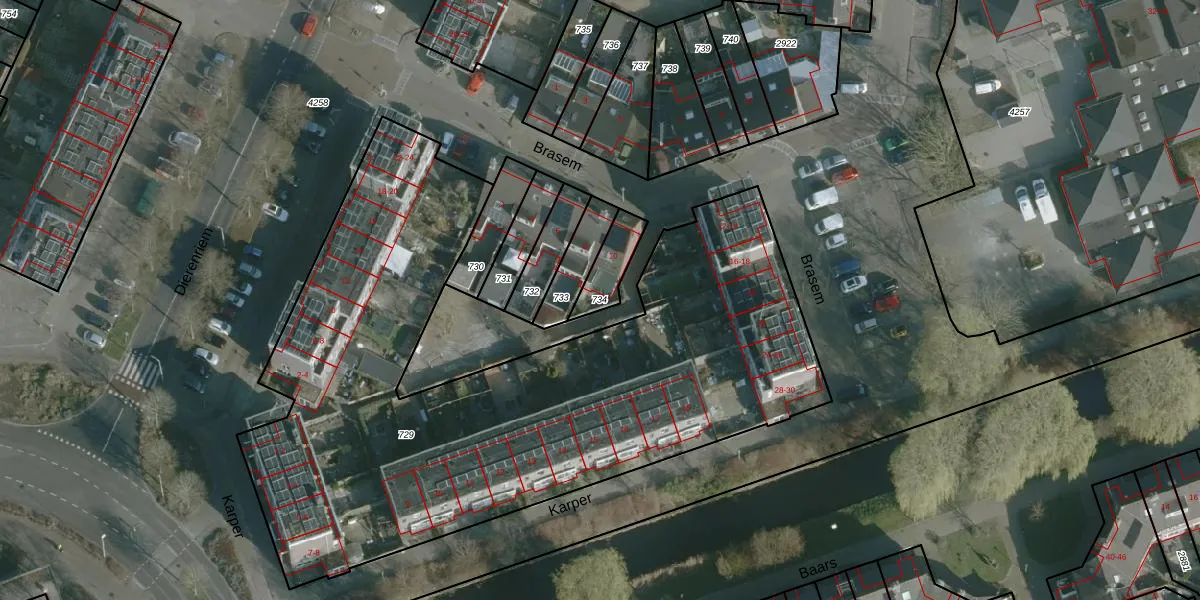 Gebruik de zoekbalk of klik op een perceel om informatie over het perceel te bekijken.