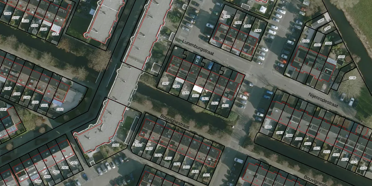 Gebruik de zoekbalk of klik op een perceel om informatie over het perceel te bekijken.
