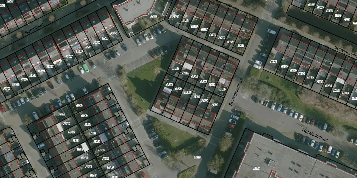 Gebruik de zoekbalk of klik op een perceel om informatie over het perceel te bekijken.