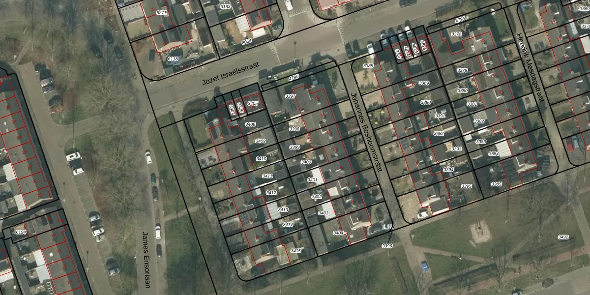 Gebruik de zoekbalk of klik op een perceel om informatie over het perceel te bekijken.