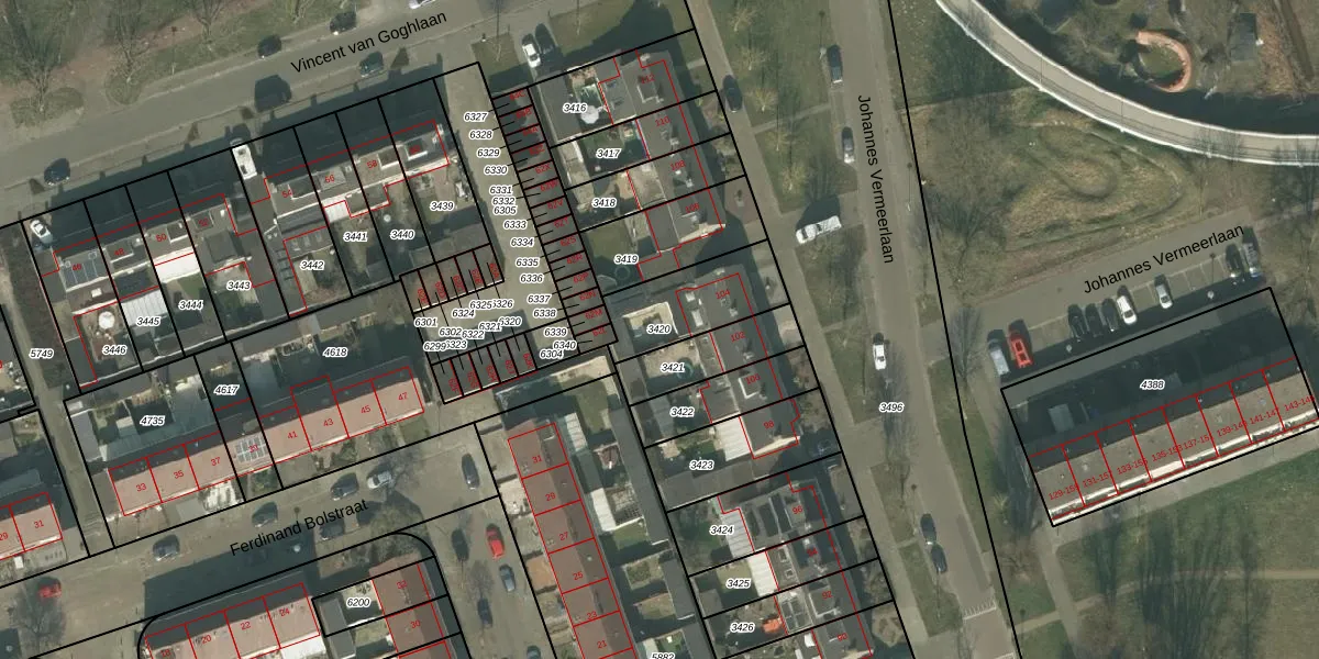 Gebruik de zoekbalk of klik op een perceel om informatie over het perceel te bekijken.