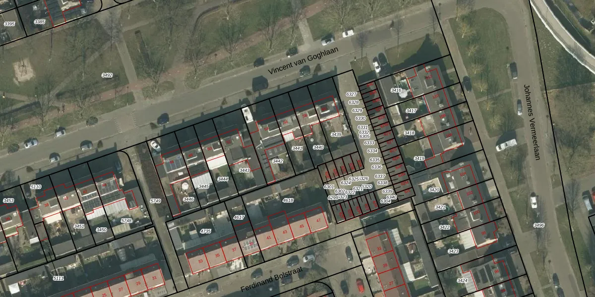 Gebruik de zoekbalk of klik op een perceel om informatie over het perceel te bekijken.