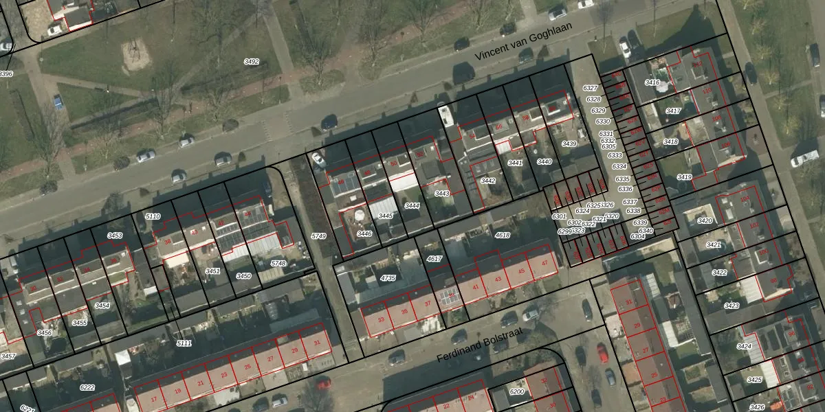 Gebruik de zoekbalk of klik op een perceel om informatie over het perceel te bekijken.