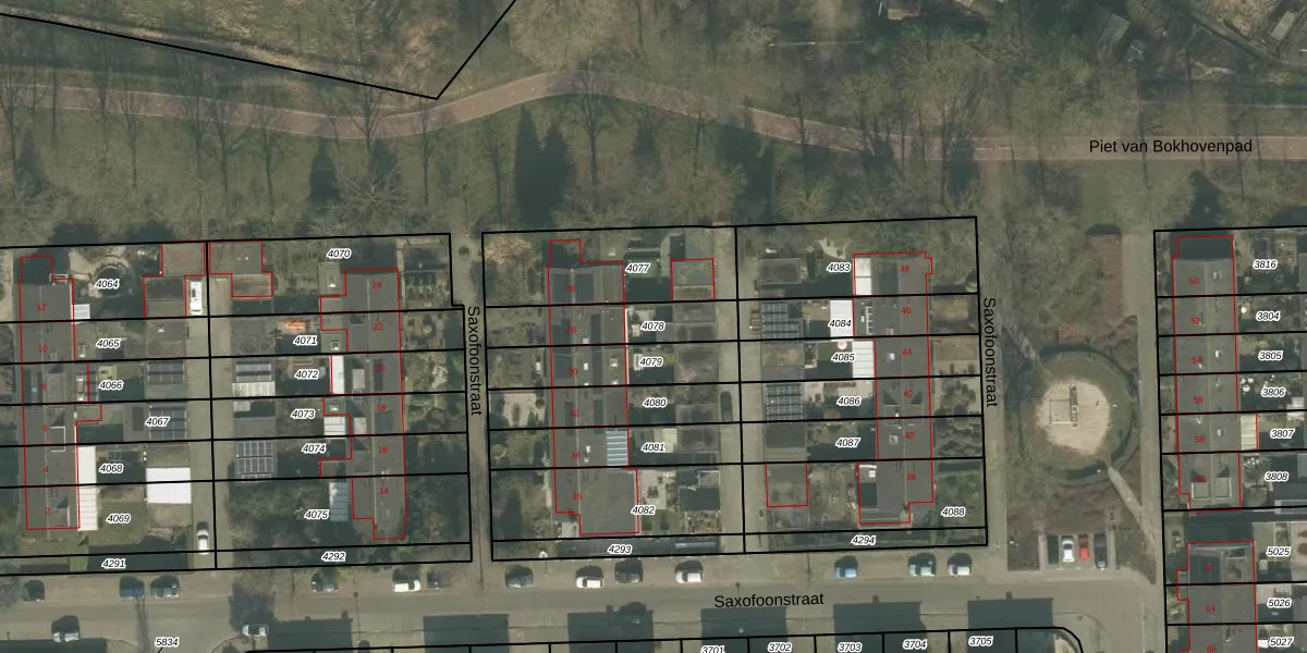 Gebruik de zoekbalk of klik op een perceel om informatie over het perceel te bekijken.