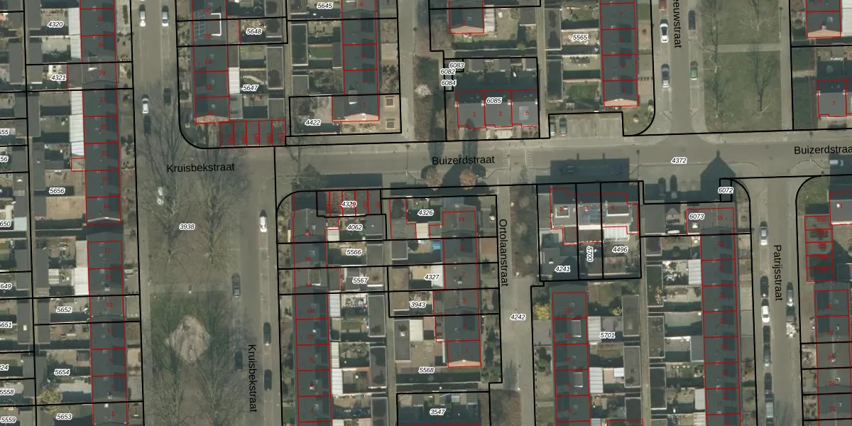 Gebruik de zoekbalk of klik op een perceel om informatie over het perceel te bekijken.