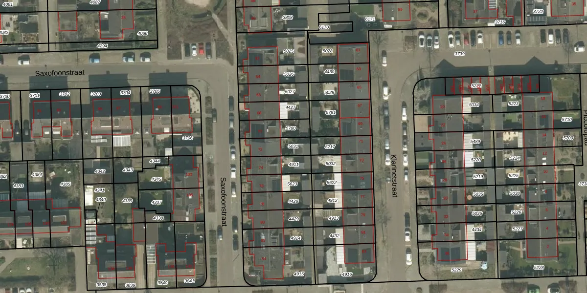 Gebruik de zoekbalk of klik op een perceel om informatie over het perceel te bekijken.