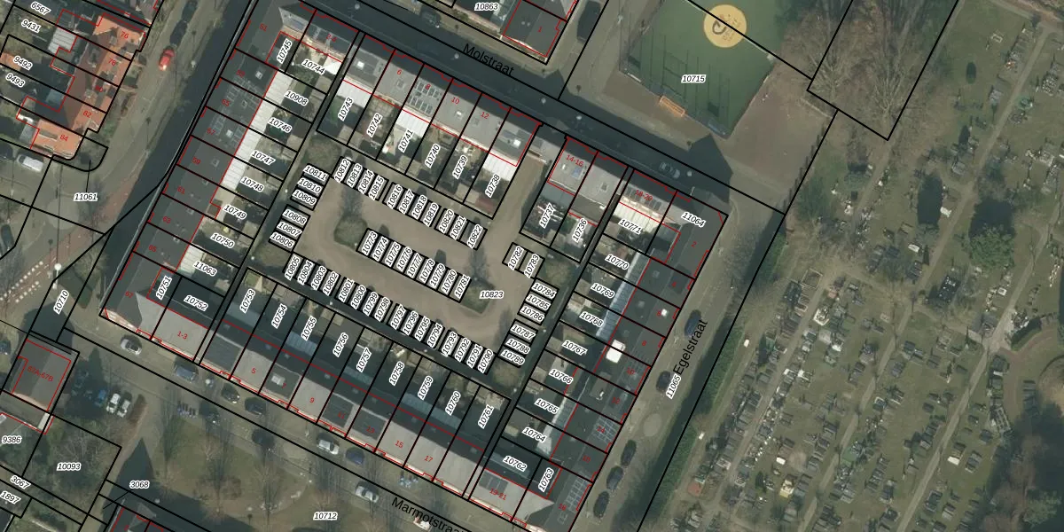 Gebruik de zoekbalk of klik op een perceel om informatie over het perceel te bekijken.