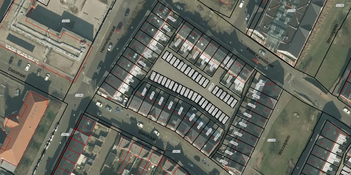 Gebruik de zoekbalk of klik op een perceel om informatie over het perceel te bekijken.