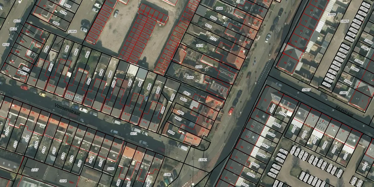 Gebruik de zoekbalk of klik op een perceel om informatie over het perceel te bekijken.