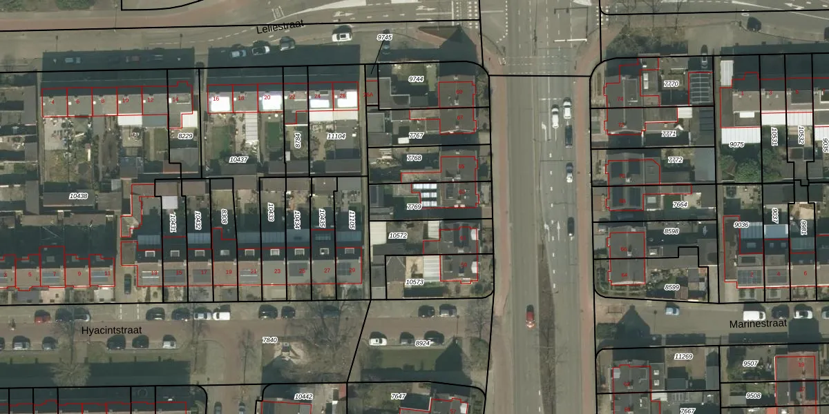 Gebruik de zoekbalk of klik op een perceel om informatie over het perceel te bekijken.
