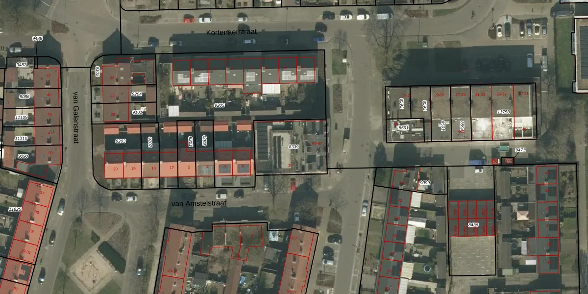 Gebruik de zoekbalk of klik op een perceel om informatie over het perceel te bekijken.
