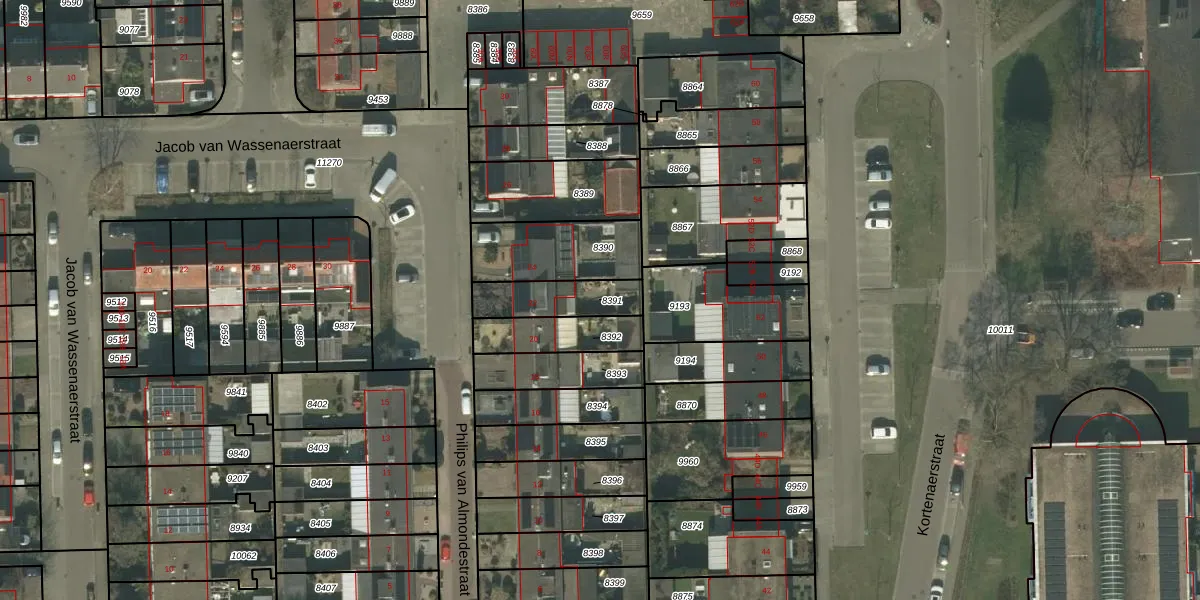 Gebruik de zoekbalk of klik op een perceel om informatie over het perceel te bekijken.
