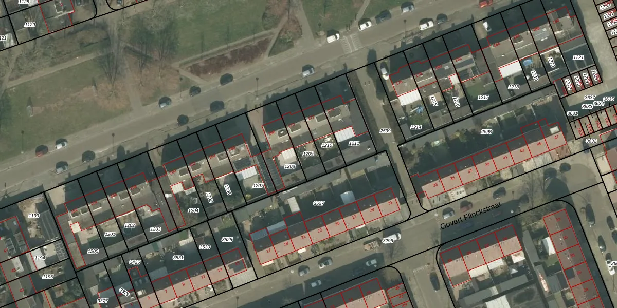 Gebruik de zoekbalk of klik op een perceel om informatie over het perceel te bekijken.