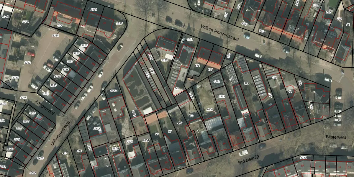 Gebruik de zoekbalk of klik op een perceel om informatie over het perceel te bekijken.