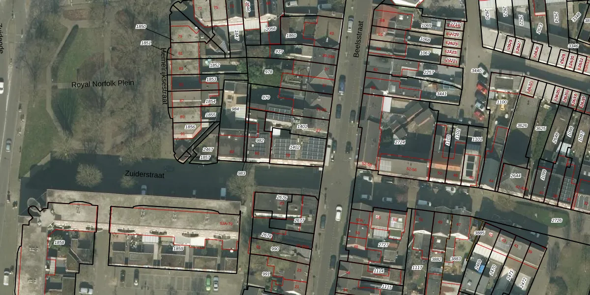 Gebruik de zoekbalk of klik op een perceel om informatie over het perceel te bekijken.