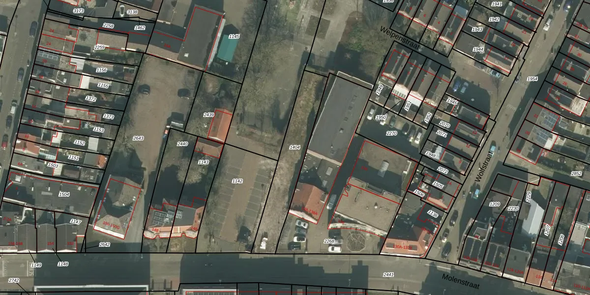 Gebruik de zoekbalk of klik op een perceel om informatie over het perceel te bekijken.