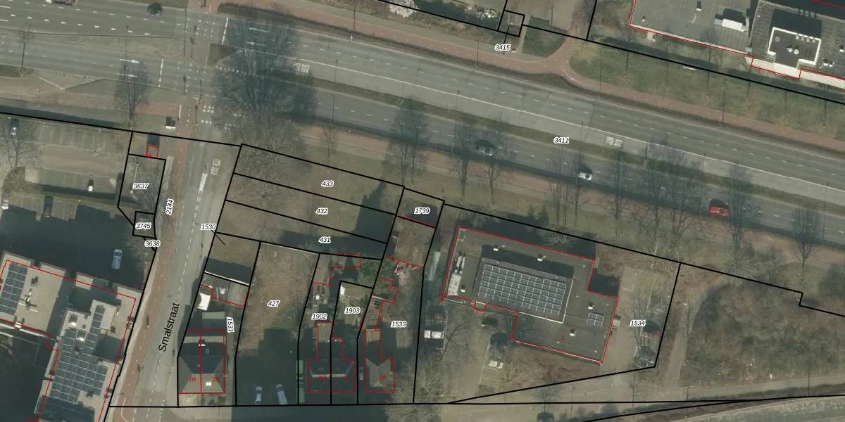 Gebruik de zoekbalk of klik op een perceel om informatie over het perceel te bekijken.
