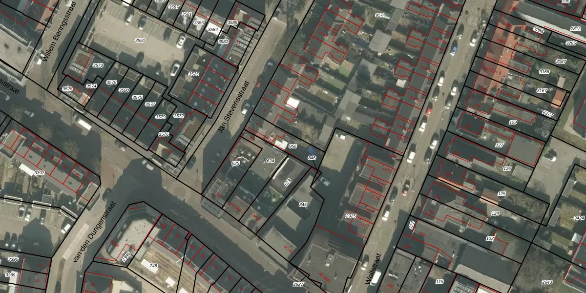 Gebruik de zoekbalk of klik op een perceel om informatie over het perceel te bekijken.