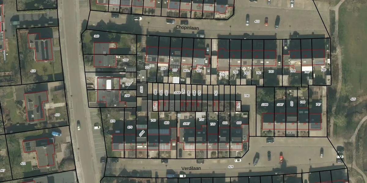 Gebruik de zoekbalk of klik op een perceel om informatie over het perceel te bekijken.