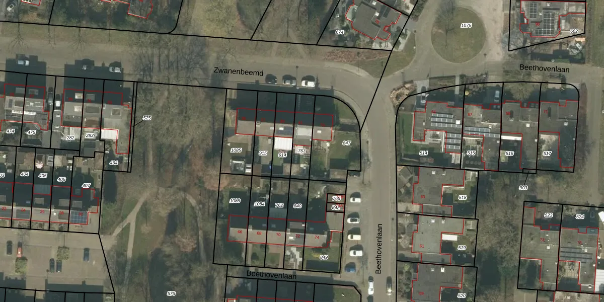 Gebruik de zoekbalk of klik op een perceel om informatie over het perceel te bekijken.