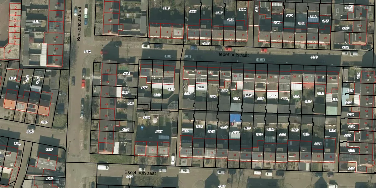 Gebruik de zoekbalk of klik op een perceel om informatie over het perceel te bekijken.