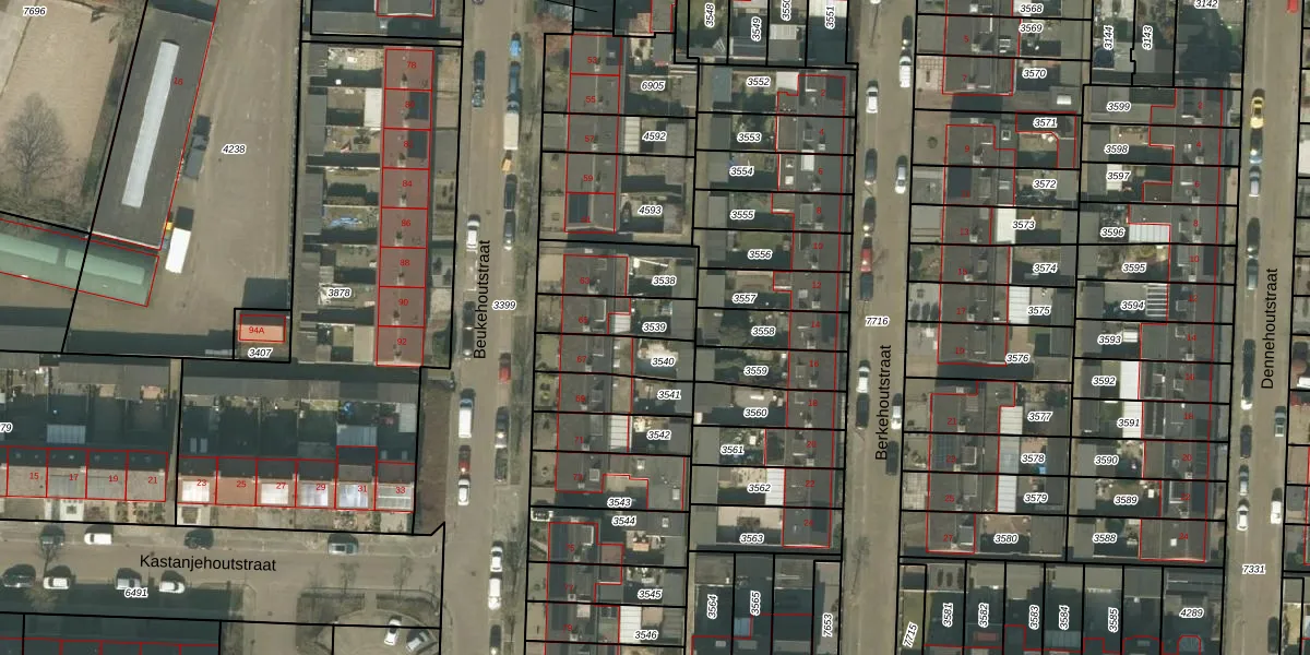 Gebruik de zoekbalk of klik op een perceel om informatie over het perceel te bekijken.