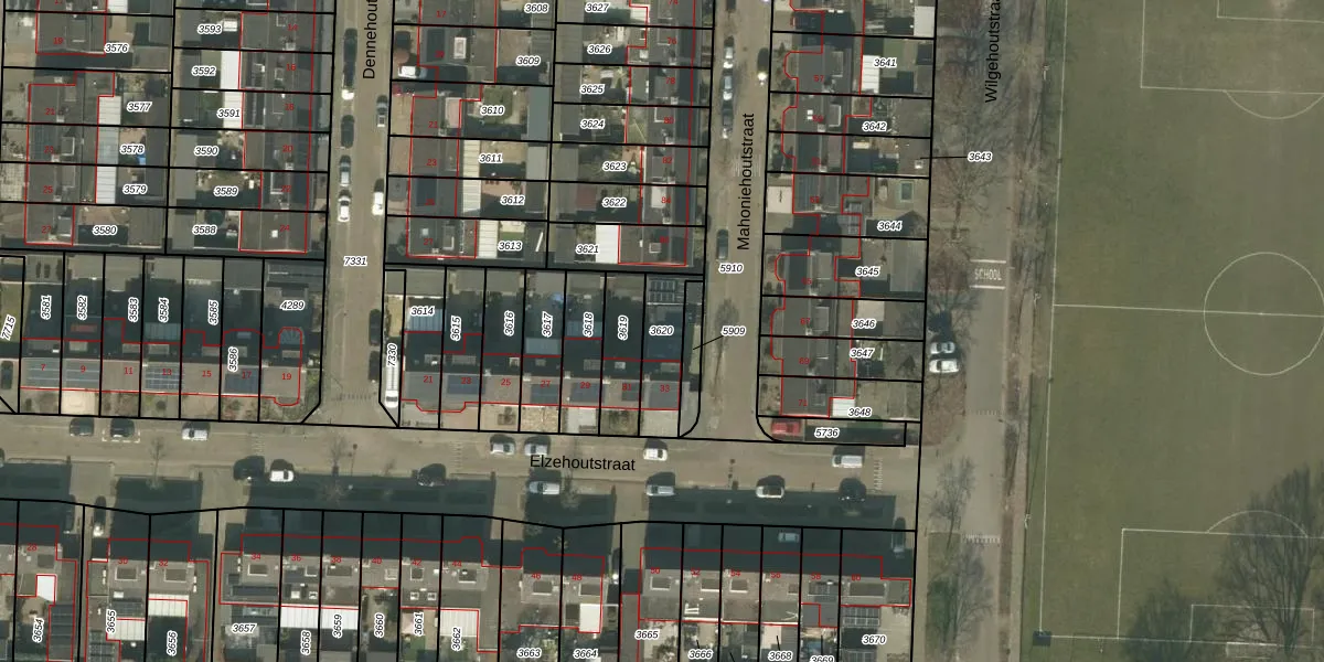 Gebruik de zoekbalk of klik op een perceel om informatie over het perceel te bekijken.