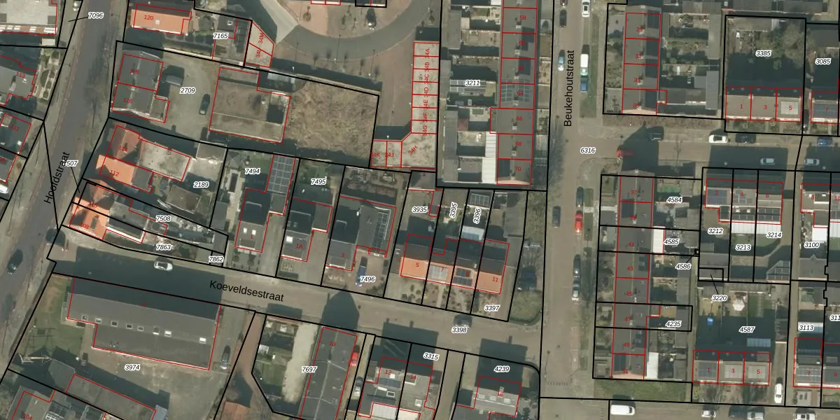 Gebruik de zoekbalk of klik op een perceel om informatie over het perceel te bekijken.