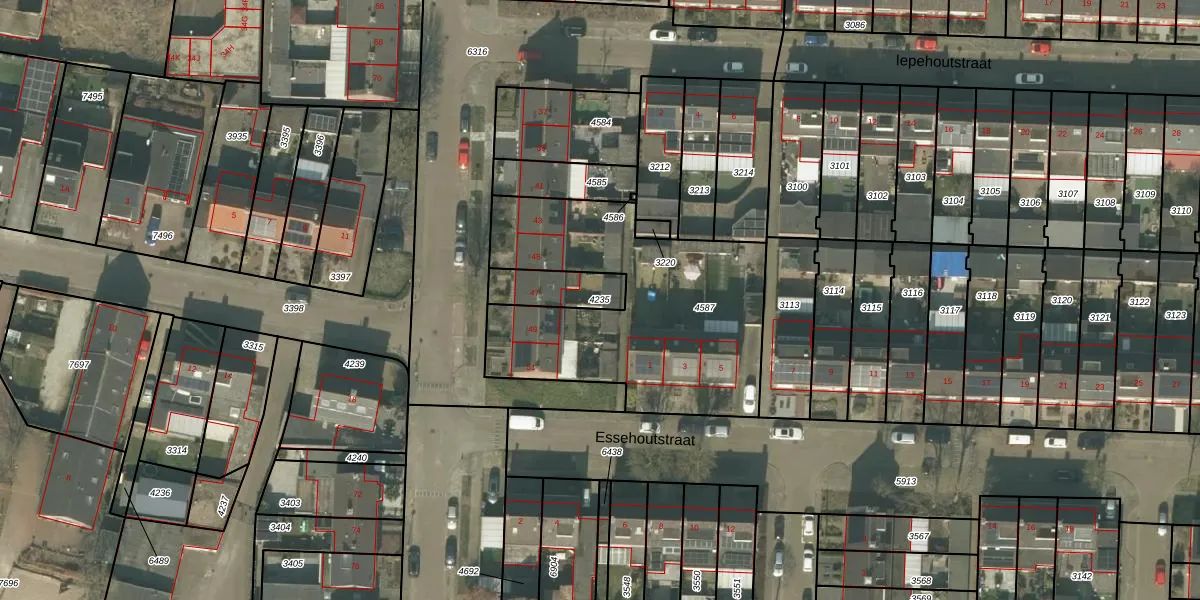 Gebruik de zoekbalk of klik op een perceel om informatie over het perceel te bekijken.