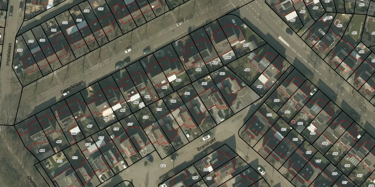 Gebruik de zoekbalk of klik op een perceel om informatie over het perceel te bekijken.