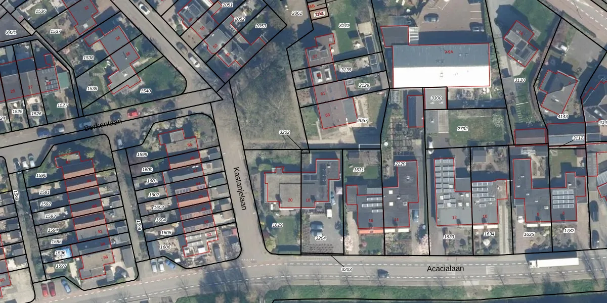 Gebruik de zoekbalk of klik op een perceel om informatie over het perceel te bekijken.