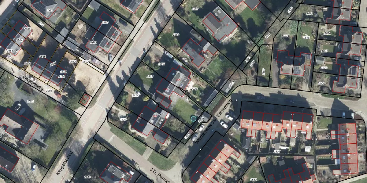 Gebruik de zoekbalk of klik op een perceel om informatie over het perceel te bekijken.