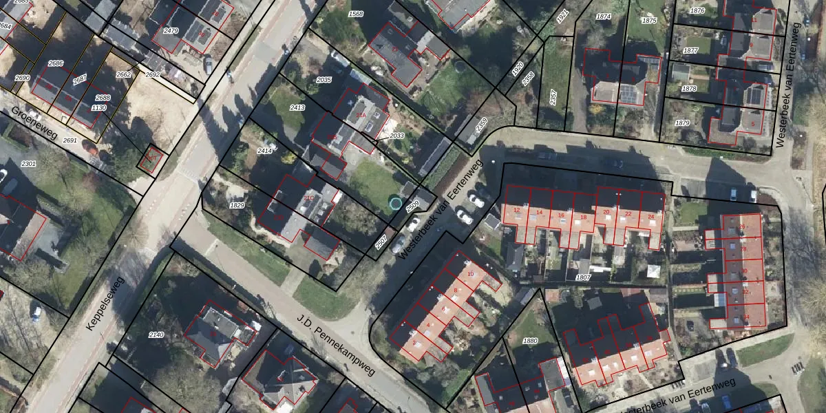 Gebruik de zoekbalk of klik op een perceel om informatie over het perceel te bekijken.