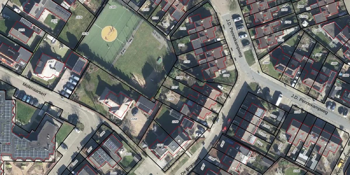 Gebruik de zoekbalk of klik op een perceel om informatie over het perceel te bekijken.