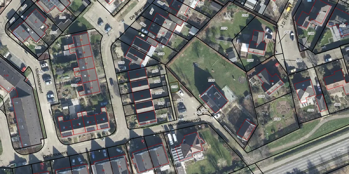 Gebruik de zoekbalk of klik op een perceel om informatie over het perceel te bekijken.