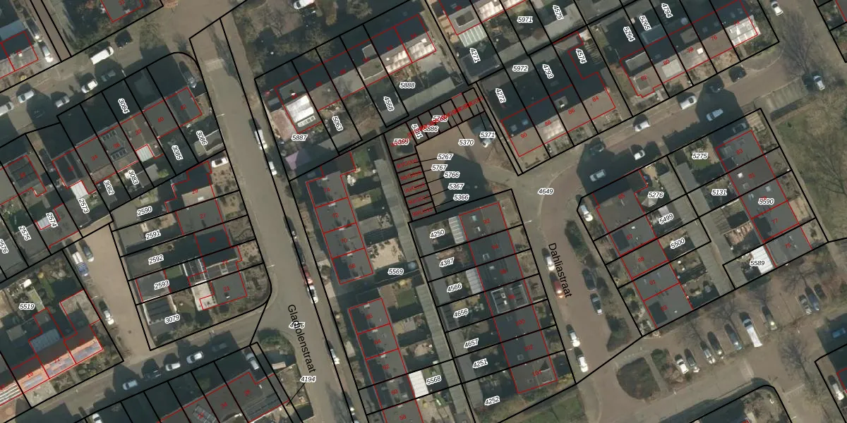 Gebruik de zoekbalk of klik op een perceel om informatie over het perceel te bekijken.