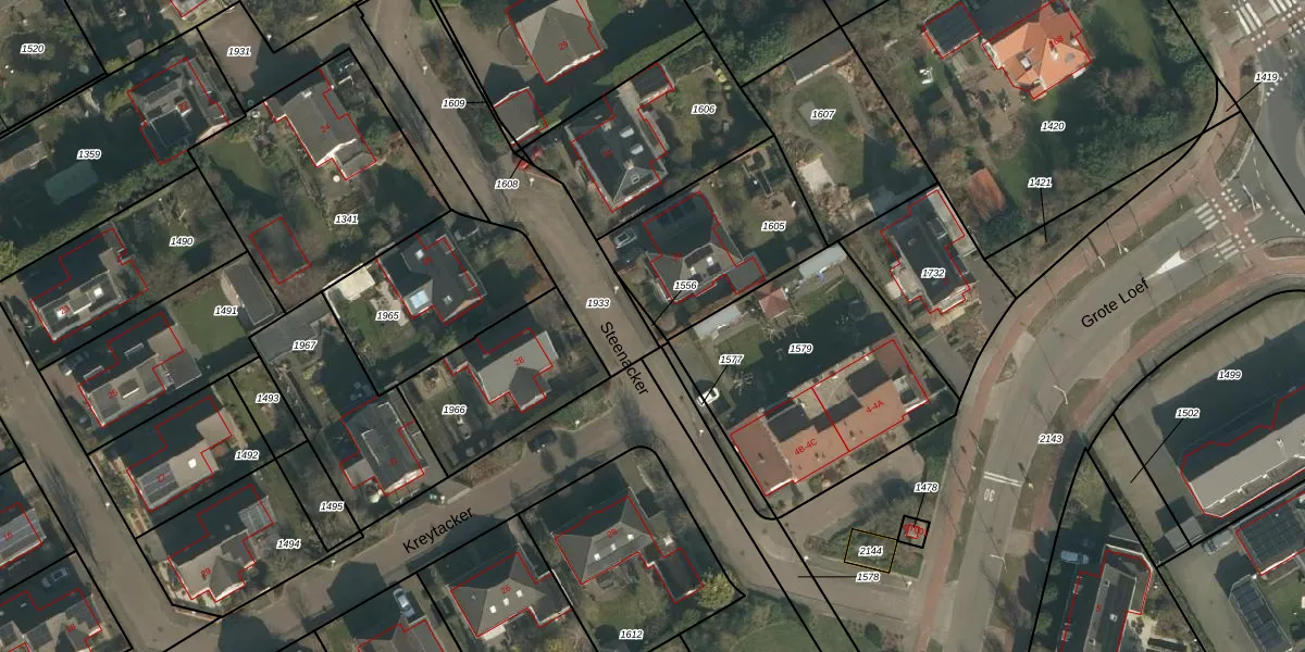Gebruik de zoekbalk of klik op een perceel om informatie over het perceel te bekijken.