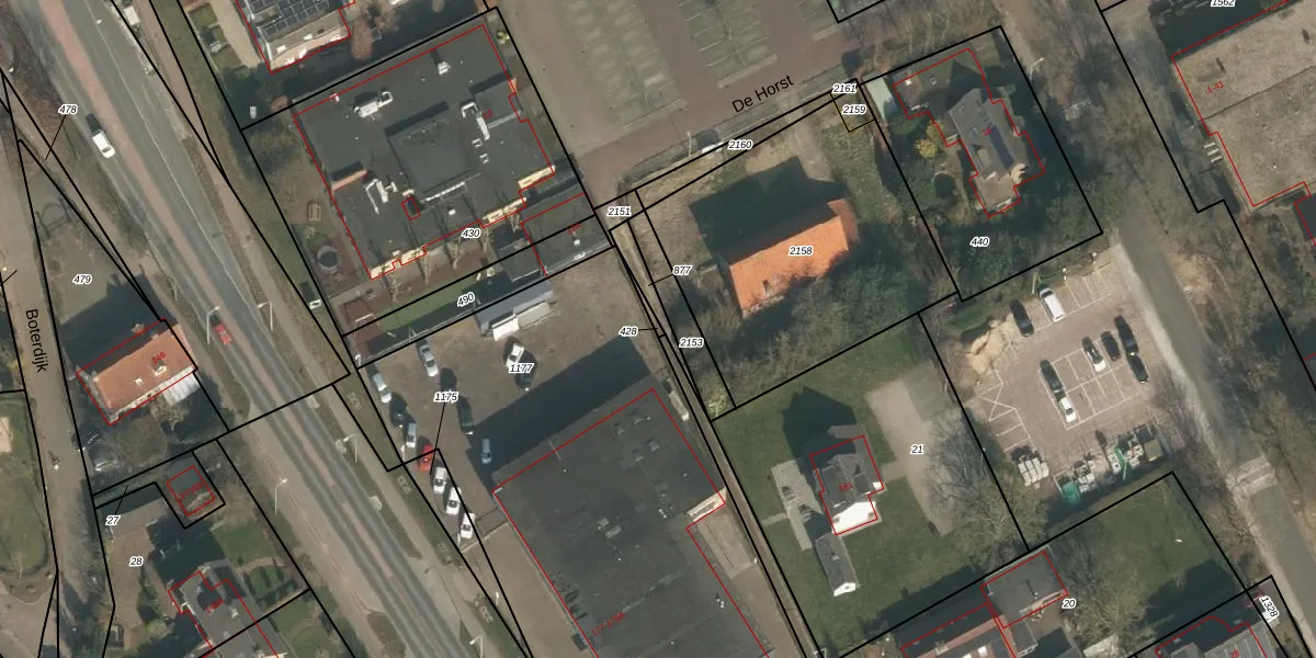 Gebruik de zoekbalk of klik op een perceel om informatie over het perceel te bekijken.
