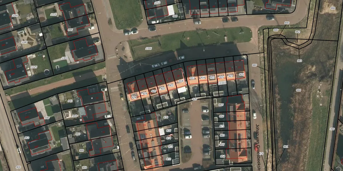 Gebruik de zoekbalk of klik op een perceel om informatie over het perceel te bekijken.