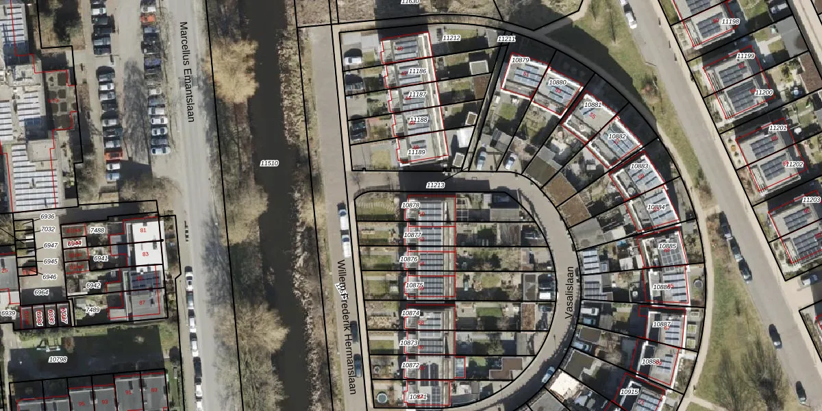 Gebruik de zoekbalk of klik op een perceel om informatie over het perceel te bekijken.