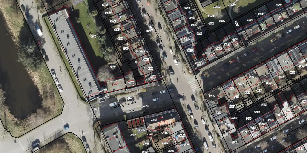 Gebruik de zoekbalk of klik op een perceel om informatie over het perceel te bekijken.