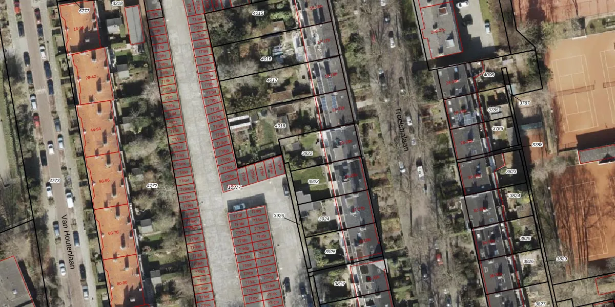 Gebruik de zoekbalk of klik op een perceel om informatie over het perceel te bekijken.